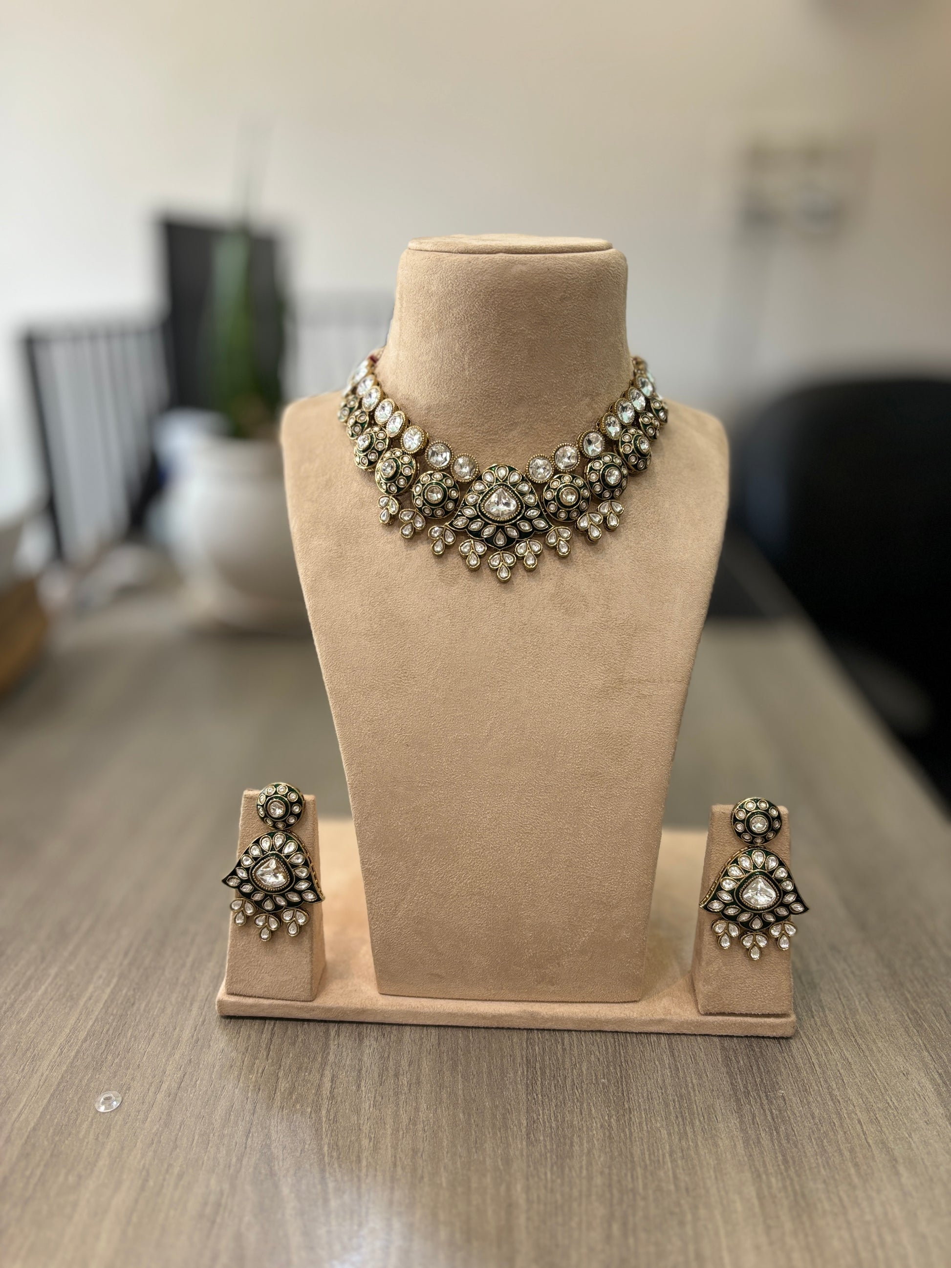 The Aira Polki Choker Set celebrates the grandeur of traditional Indian craftsmanship.