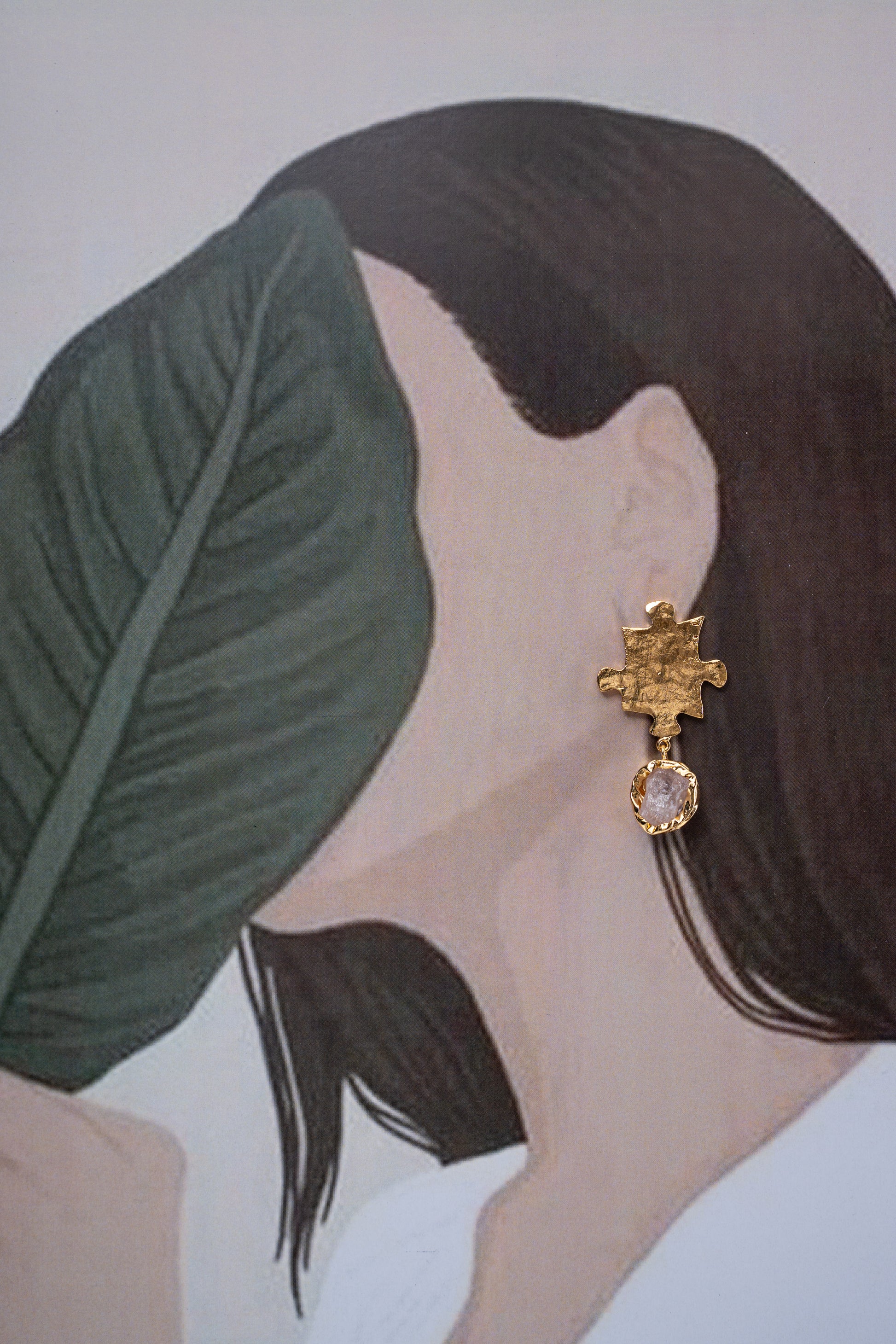 The top design showcases a modern puzzle piece motif, rendered with meticulous detail and a polished finish. Below, a vibrant white drop adds a splash of color and a touch of sophistication, creating a striking contrast that draws the eye.